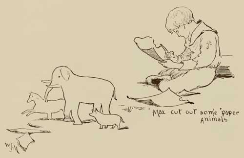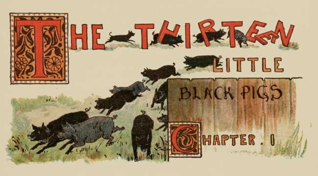 "But black men are painted black. Christy minstrel men are, I[Pg 13] know, for nurse told me so when I was frightened of them. And pigs couldn't paint themselves black. But oh, Max," she broke off, "do look how they're running and jumping now. They're all over the field. One, two, three, four—there's thirteen of them, Maxie."
