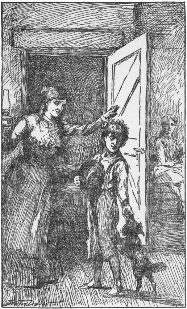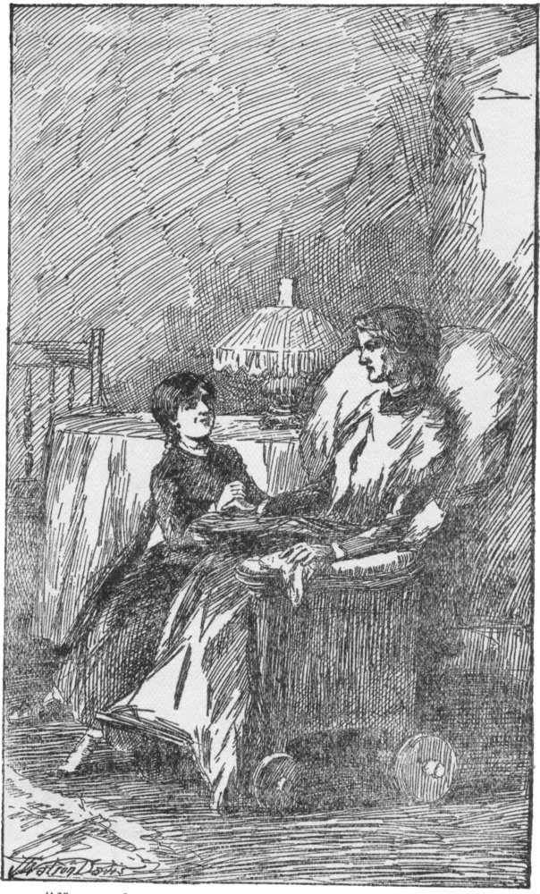 “And the dearest old sitting-room—Aunt Rody will call it ‘the room’ as if it were the only room in the house; there’s a rag carpet on the floor—Aunt Rody dotes on rag carpets; so would I if it were not for the endless sewing of the rags—and there’s a chair with rockers, and on the top of the back of it a gilded house and trees almost rubbed off, and on the back a calico cushion tied on with red dress braid, and a calico cushion in the bottom, and the dearest old lady sits in it and sews, and talks, and reads the Bible and the magazines; there’s a chair without rockers for the old lady who never rocks or does easy pleasant things, and hates it when other people, especially little girls, do any easy pleasant thing; and there’s another chair, like an office chair, with a leather cushion for the dear old man with a rosy face like a rosy apple, and a bald head on the top, and long white whiskers that he keeps so nice they shine like silver, and make you never mind when he wants to kiss you; and there’s a high mantel with a whole world of curious things on it that came out of a hundred years ago, and a lounge with a shaggy dog on a cushion on one end of it—how Aunt Rody lets him is a wonder to me—and a round table with piles of the ‘New York Observer’ on it. And just now the sweetest lady in the world in her wine-colored wrapper is lying on the lounge and the little girl in blue is flying about helping Aunt Affy and Aunt Rody get supper—O, mother,” with a break in her voice, “how I ache to get you there and take care of you there; Cousin Don says it is the best place in the world for you and me,—we would grow fresh and green and send out oxygen like all the green things in Bensalem. I think I’d like to grow green and send out oxygen.”
