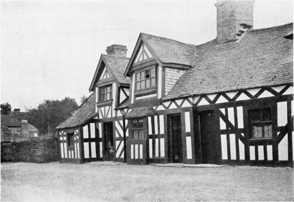 One really grows a little tired of recording the picturesqueness of Shropshire villages.[Pg 36] They are nearly all pretty: for the houses, when they are not of timber and plaster, are often built of the warm red sandstone that is the stone of the county and acquires such soft, mellow colours in its old age. But I sometimes think Hodnet is the prettiest village of them all. Half the houses are black-and-white; and near the church gate a group of timber gables, with the octagonal tower in the background, forms a complete and perfectly composed picture. Bishop Reginald Heber, the author of “From Greenland’s icy mountains,” was rector of Hodnet for some years before he sailed for “India’s coral strand.”