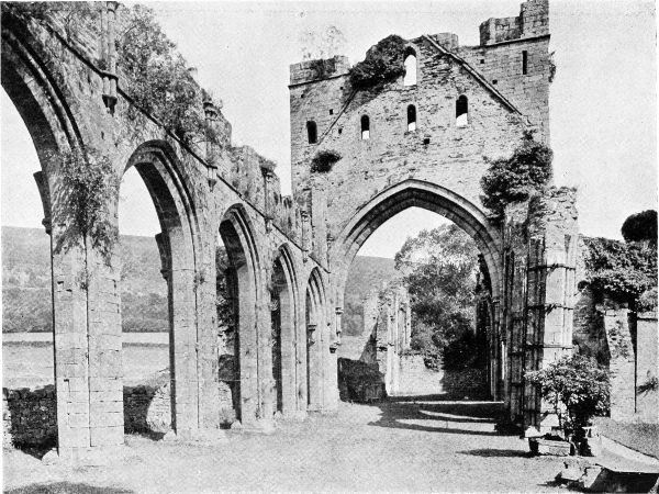 Presently, after passing through the pretty village of Leighton-under-the-Wrekin, we see Buildwas, the Shelter near the Water, on the further side of the river. Perhaps this is the most striking view of the fourteen massive pillars of this roofless nave, in which the Cistercians of the twelfth century austerely worshipped; but[Pg 28] we can visit the ruins if we wish to do so by crossing the bridge that has quite recently superseded one built by Telford. There is not very much more to be seen at close quarters than from here: the great charm of Buildwas lies in its effect as a whole, in its simplicity and strength, and in its position by the river.