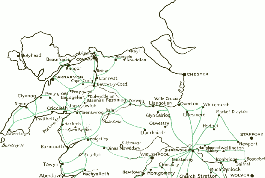 [7] I have seen somewhere that the original name of these falls was not Rhaiadr y Wennol, or Swallow Falls, but Rhaiadr Eweynol, or Foaming Falls. This seems probable: but Borrow accepted the former version, and he was a stern critic in such matters.