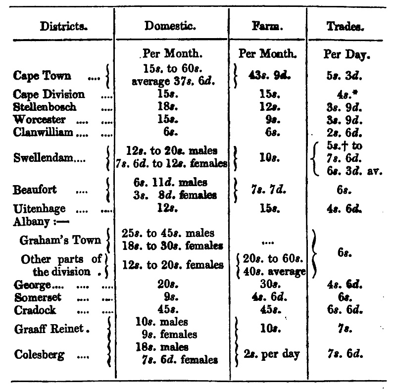 “At the Cape of Good Hope, persons of the following classes, if of good character and ability in their callings, are stated to be in demand; viz. agricultural labourers, shepherds, female domestic and farm servants, and a few country mechanics, such as blacksmiths, wheelwrights, carpenters, and masons.”