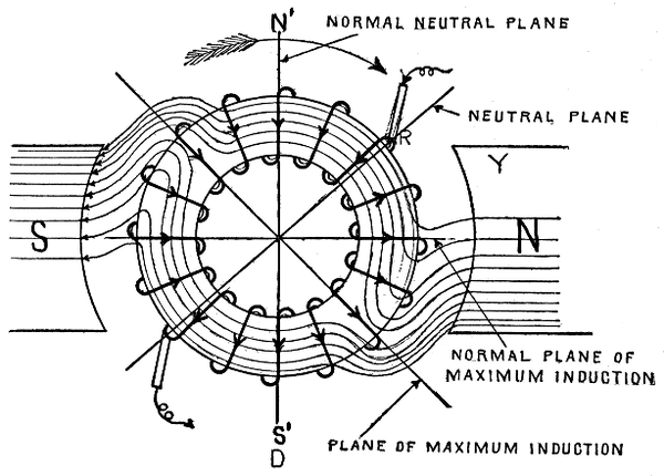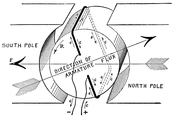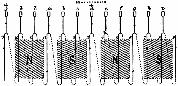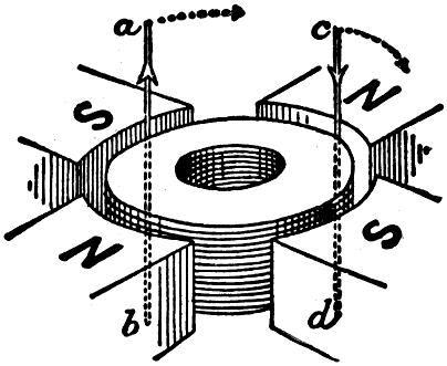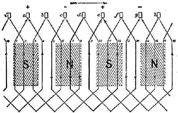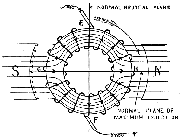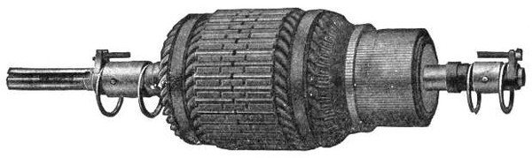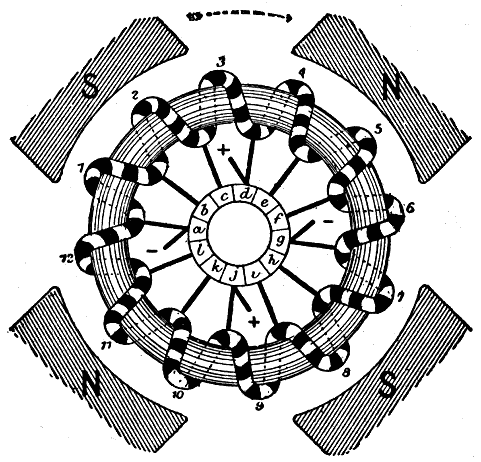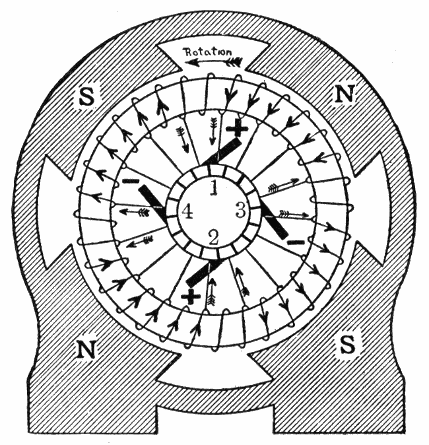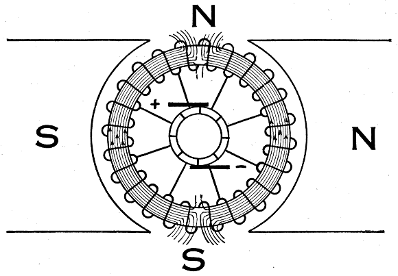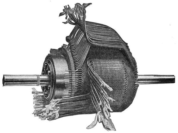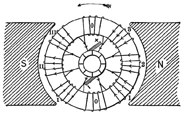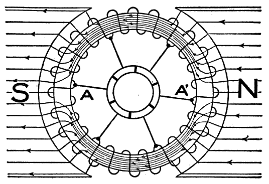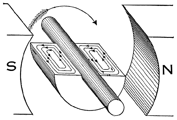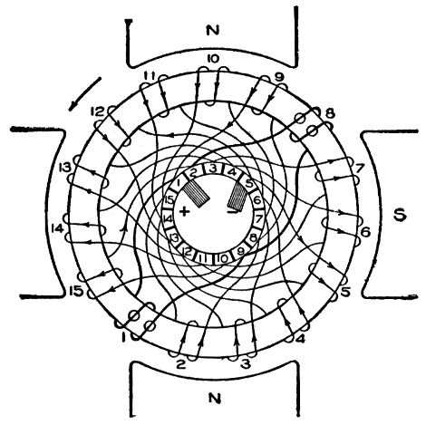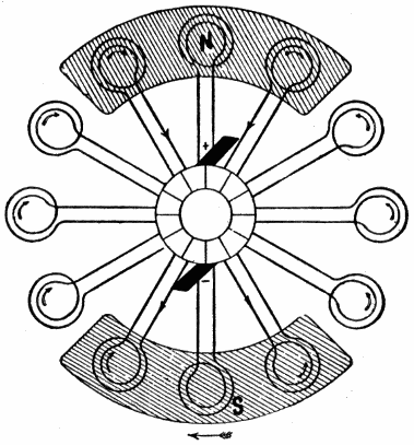 An armature for practical use has a large number of coils, suitably arranged upon an iron core, so that a large proportion of them are always actively cutting the lines of force, or moving into the positions of best action in the magnetic field.