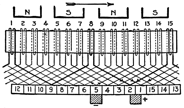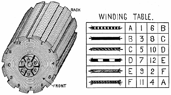 To connect up rightly the inductors on an armature so as to produce a desired result is a simple matter in the case of ring winding, for bipolar or multipolar machines. It is a less easy matter in the case of drum winding, especially for multipolar machines. Often there are several different ways of arriving at the same result, and the fact that methods which are electrically equivalent may be geometrically and mechanically different makes it desirable to have a systematic method of treating the subject.