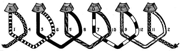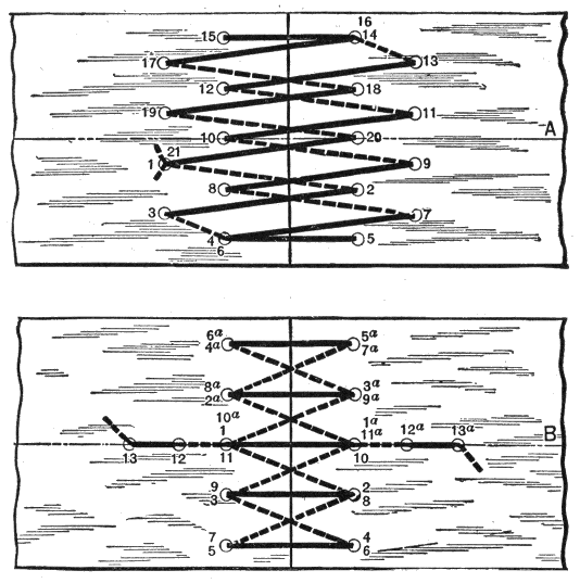 For example, in order to direct the winder how to make the connections for, say a four pole machine having 100 bars spaced around its armature, some plain method of representing all the connections so that they may be easily understood is necessary. From this the workman finds out whether he is to connect the front end of bar No. 1 across to 50 or across a quarter of the circumference to 24, or across three quarters of it to bar 75. Again, he ascertains to which bar he is to connect the back1 end of the bar, and how the bars are to be connected to the commutator.