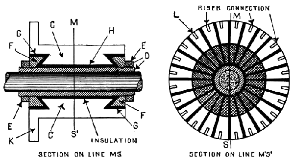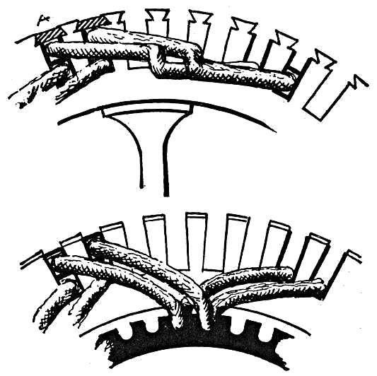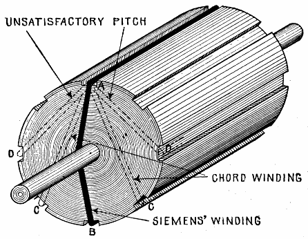 The elementary arrangement of drum and disc armatures has already been considered, which is sufficient explanation for small armature coils of only a few turns of wire, but in the case of larger machines which require many coils, further treatment of the subject is necessary.