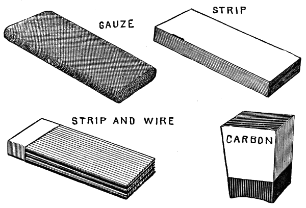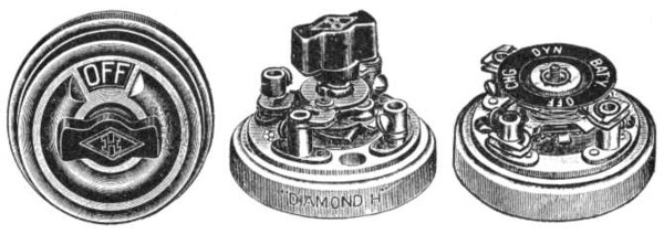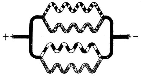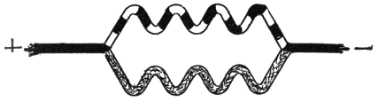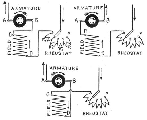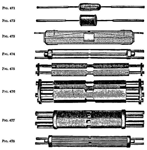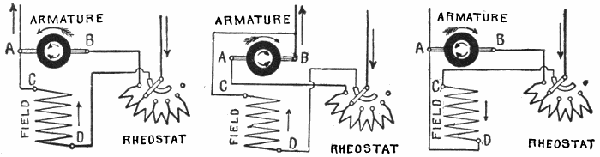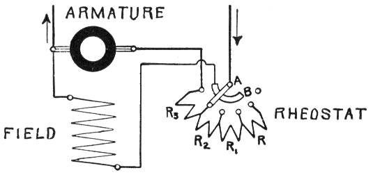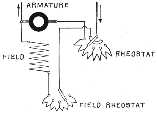 Rheostats.—These devices consist of conductors inserted into a circuit for the purpose of diminishing, either constantly or in a variable degree, the amount of current flowing, or to develop heat by the passage of a current through them. Rheostats designed to be used in starting electric motors are frequently called "starting boxes."