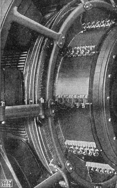 Numerous attempts have been made to utilize this part of the winding by making the pole pieces extend around the ring in such a manner that lines of force will pass to the inside of the ring, also by arranging an additional pole piece on the inside of the armature, but mechanical considerations have shown these methods to be impractical.