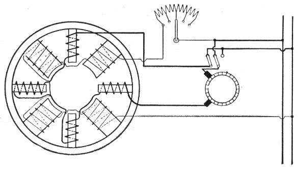 Ans. If the line voltage should be applied directly to the terminals of the armature when not running, an excessive flow of current will result, on account of the low resistance. 423 424 Accordingly, to prevent injury to the winding, a variable resistance or starting box is inserted between one supply terminal and the armature so that the pressure may be applied gradually while the motor is coming up to speed.