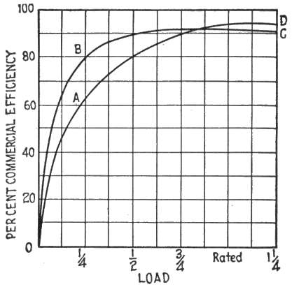 Ans. If an additional coil be added to the elementary armature, at right angles to the existing coil, and its ends suitably connected to a four part commutator, as in fig. 185, so that 222 one coil is in the position of best action, while the other is in the position of least action, the pulsations of the resulting current will be of less magnitude. By increasing the coils and suitably altering the construction of the commutator to accommodate the ends of these coils, the resultant current may be represented by practically a straight line, indicating the so called continuous current, instead of the wavy resultant curve No. 6, as illustrated in fig. 187.