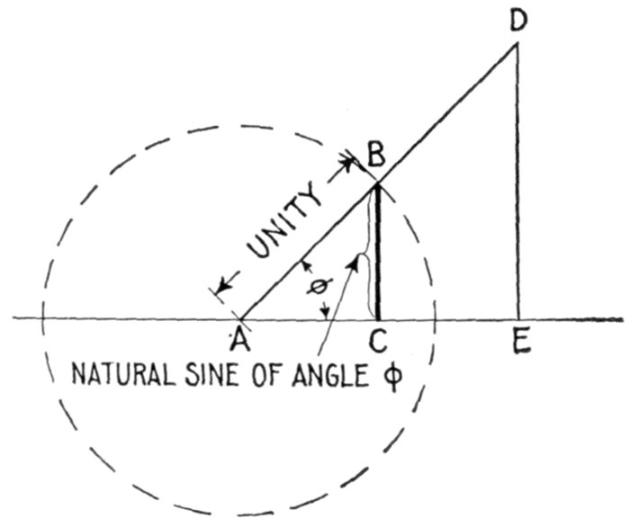 This line BC is called the natural sine of the angle, and its values for different angles are given in the table on page 451.