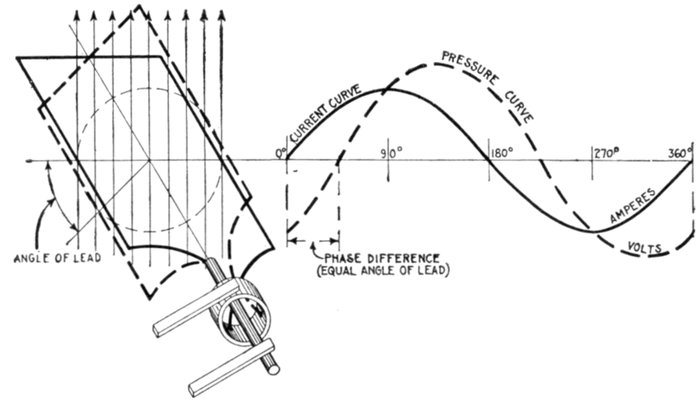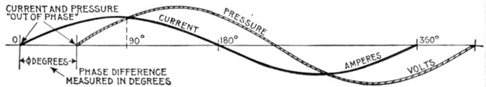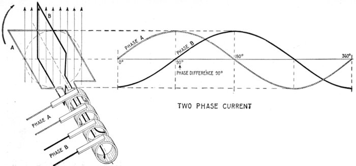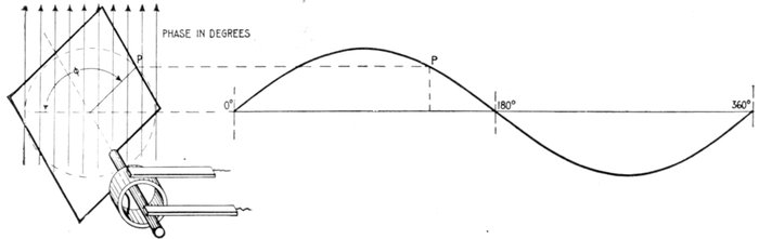 Phase.—As applied to an alternating current, phase denotes the angle turned through by the generating element reckoned from a given instant. Phase is usually measured in degrees from the initial position of zero generation.
