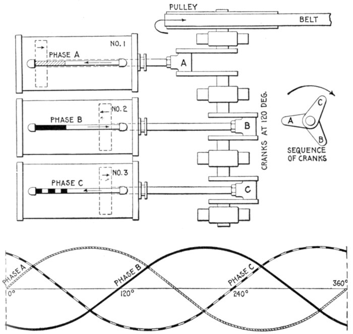 in which y is any ordinate, and φ, the angle of the corresponding position of the coil in which the current is being generated as illustrated in fig. 1,220.