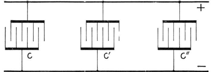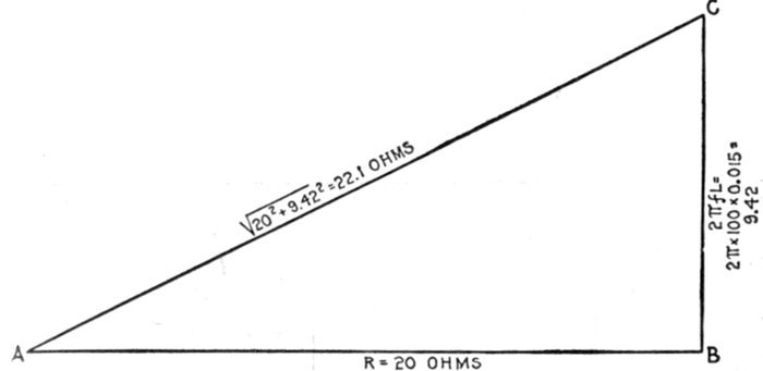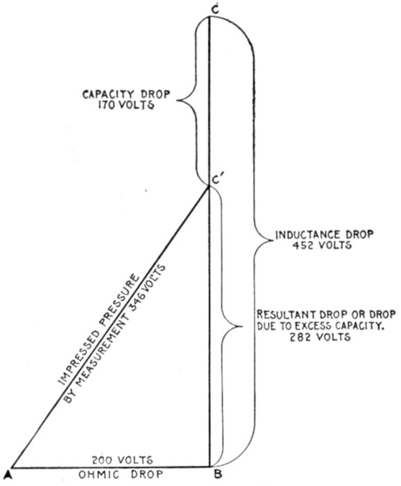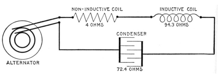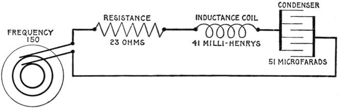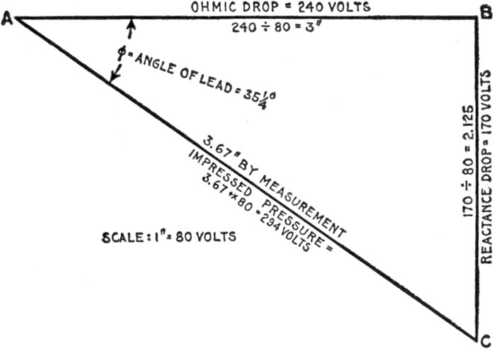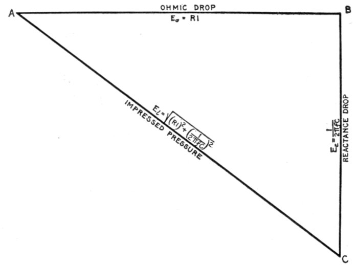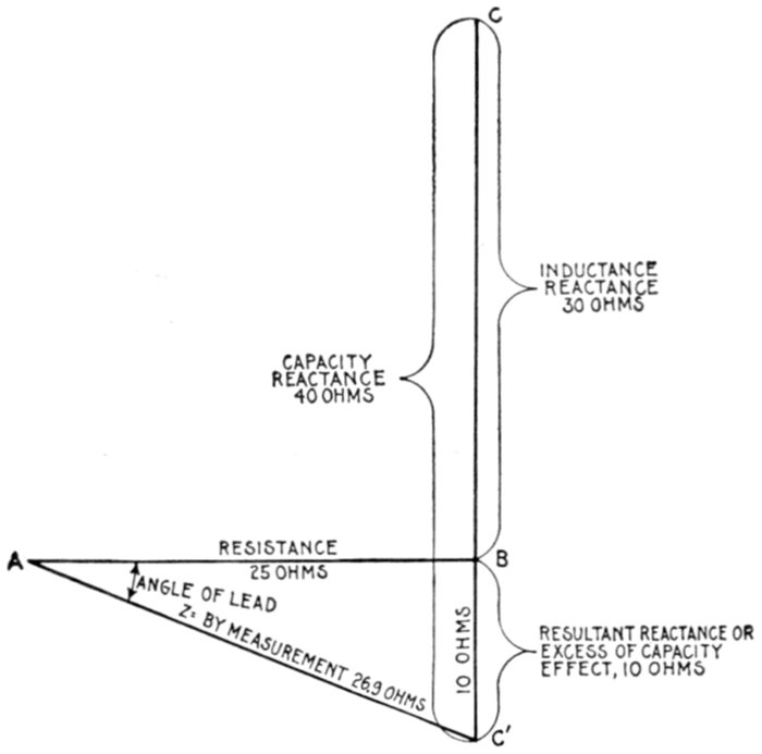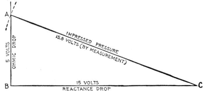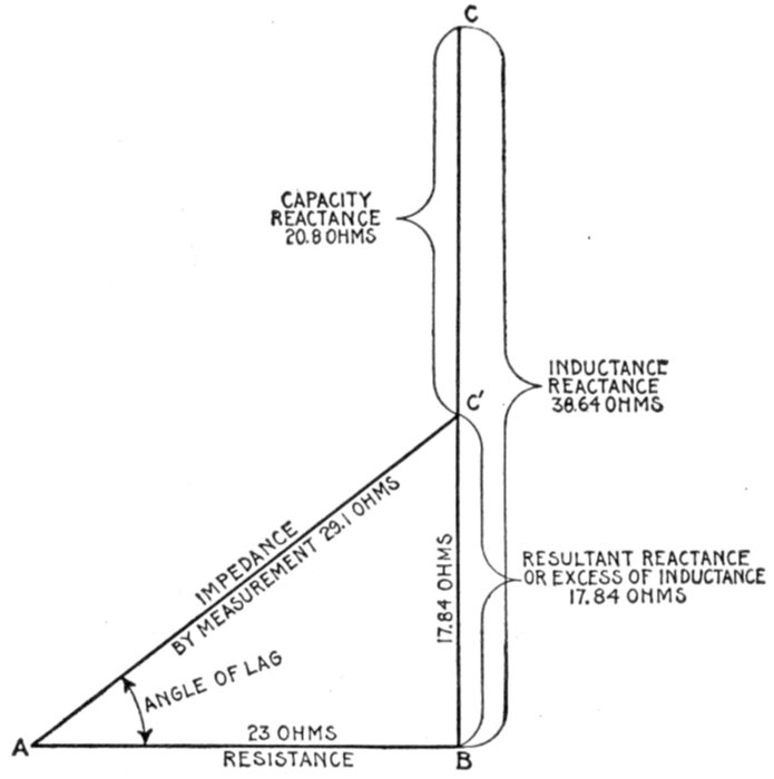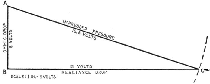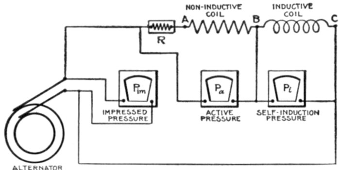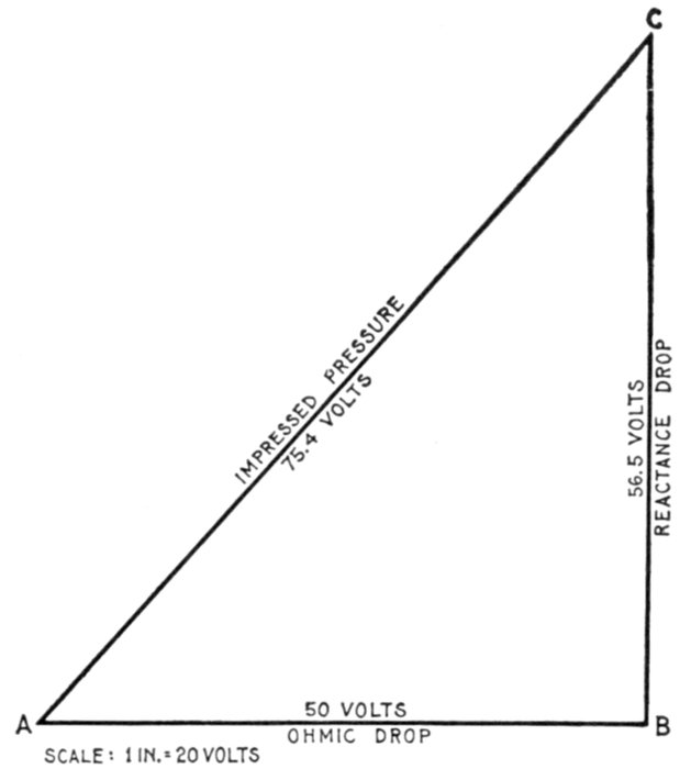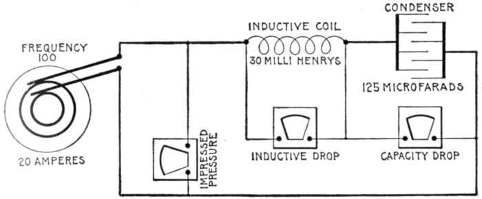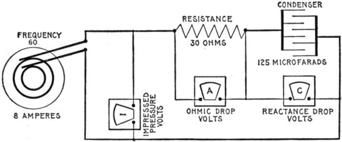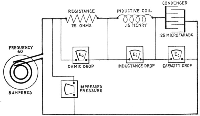 | Definitions: impressed pressure, active pressure, self-induction pressure, reverse pressure of self-induction—rate of change in current strength—properties of right angle triangles—equations of the right triangle—representation of forces by wires—parallelogram of forces; the resultant—circuits containing resistance and inductance—graphical method of obtaining the impressed pressure—equations for ohmic drop and reactance drop—examples—diagram for impedance, angle of lag, etc.—circuits containing resistance and capacity—capacity in series, and in parallel—amount of lead—action of condenser—the condenser pressure—capacity pressure—equation for impedance—- examples and diagrams—circuits containing resistance, inductance, and capacity—impedance equation—examples and diagrams—equation for impressed pressure—examples and diagrams. | |