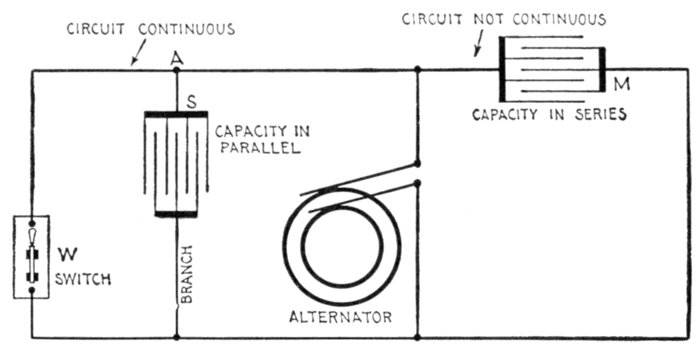 The properties of alternating currents are more complex than those of continuous currents, and their behavior more difficult to predict. This arises from the fact that the magnetic effects are of far more importance than those of steady currents. With the latter the magnetic effect is constant, and has no reactive influence on the current when the latter is once established. The lines of force, however, produced by alternating currents are changing as rapidly as the current itself, and they thus induce electric pressures in neighboring circuits, and even in adjacent parts of the same circuit. This inductive influence in alternating currents renders their action very different from that of continuous current.