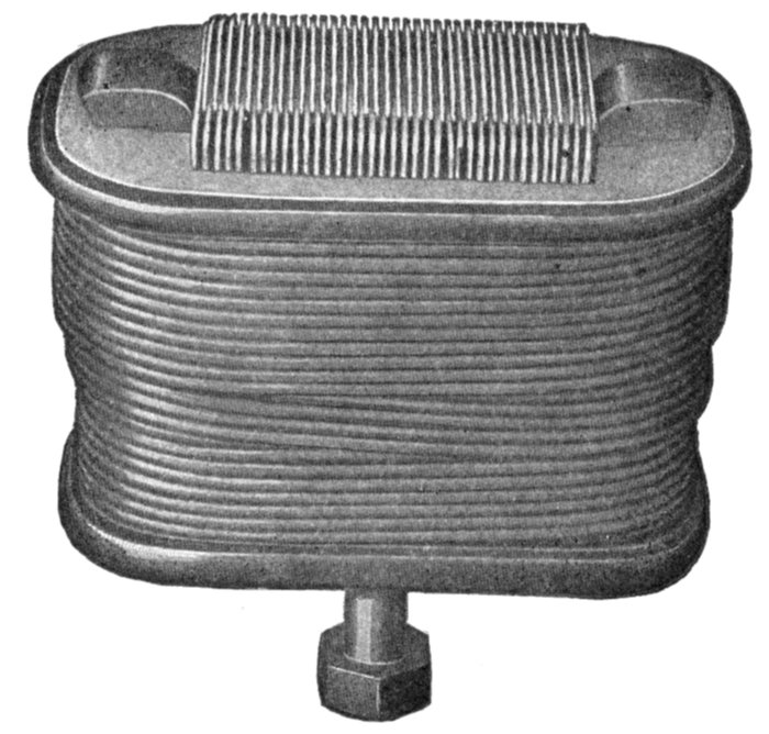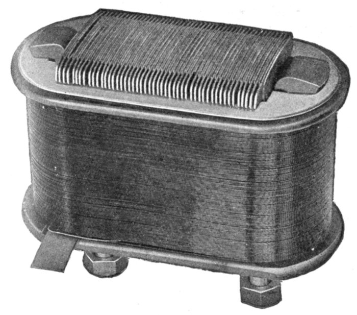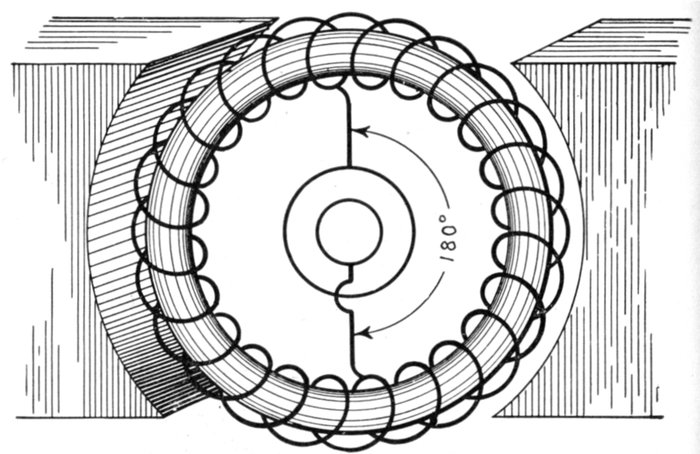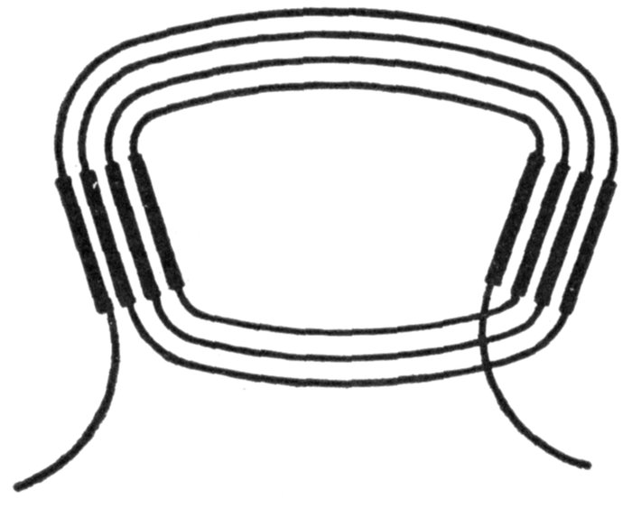 Spiral Winding.—This is a winding in which "spiral" coils, as shown in fig. 1,569, are used. The spiral form of coil is very extensively used for armature windings of alternators.
