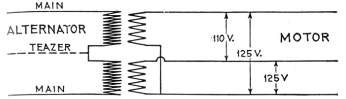 Ans. The reduced cost of transmission by use of high voltages and transformers, greater simplicity of generators and motors,[Pg 998] facility of transforming from one voltage to another (either higher or lower) for different purposes.