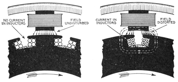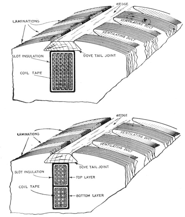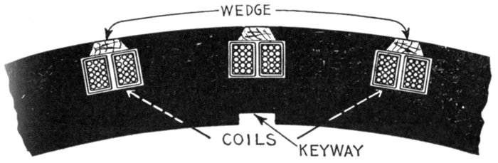 Ans. The centrifugal force being considerable on account[Pg 1266] of the high speed, requires specially strong construction to resist it, consequently closed or nearly closed slots must be used.