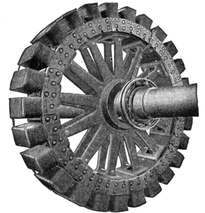 Some examples of revolving fields are shown in figs. 1,579 to 1,584. Figs. 1,577 and 1,578 show some construction details of a stationary armature of turbine alternator.