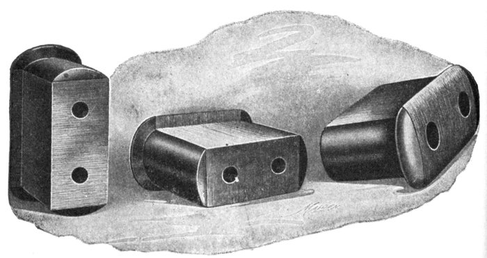 Shuttle Winding.—This type of winding consists of a single coil having a large number of turns, wound in two slots spaced 180° apart. It was originally used on Siemens' armature and is now used on magnetos, as shown in figs. 1,459 to 1,461.