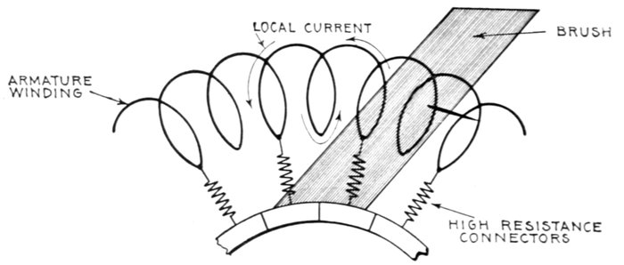 Because of the very rapid reversals in direction of the torque thus set up, there is not sufficient time to overcome the inertia of the armature before the current reverses and produces a torque in the opposite direction, hence, the armature remains stationary or, strictly speaking, it vibrates.