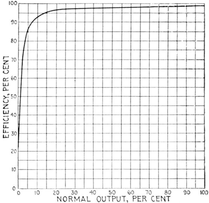 When the consumer installs and operates the apparatus for his own use and wear, there is considerable saving over motor generator sets because a small one to two horse power motor generator outfit has an efficiency of only 40 to 50 per cent. while mercury vapor rectifiers will have from 75 to 80 per cent.