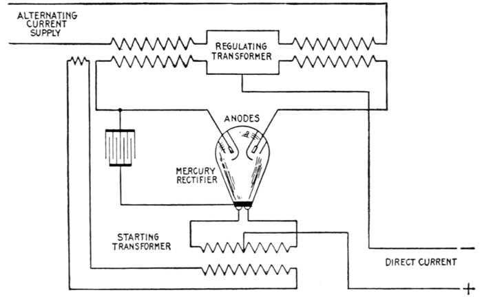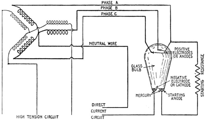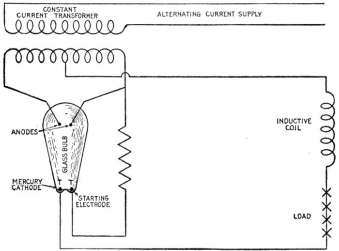 [11] NOTE.—The terms vapor and arc as applied to rectifiers, do not indicate a different principle; the Westinghouse Co. employ the former, and the General Electric Co., the latter.
