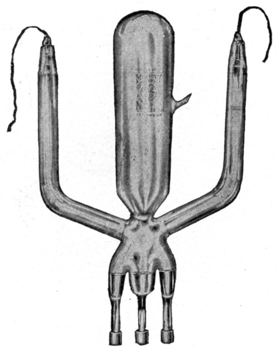 [Pg 1515] the part of the bulb containing the mercury, and induces static sparks on the surface of the mercury which break down the negative electrode resistance.