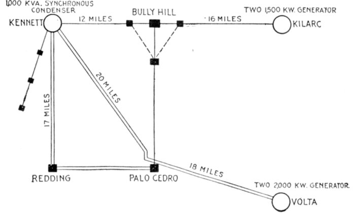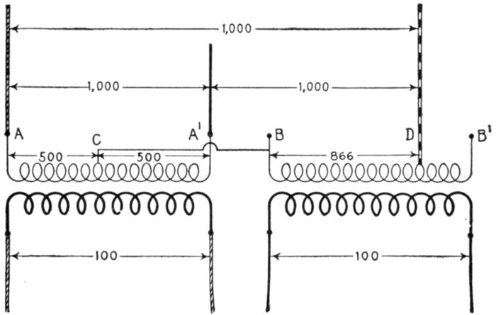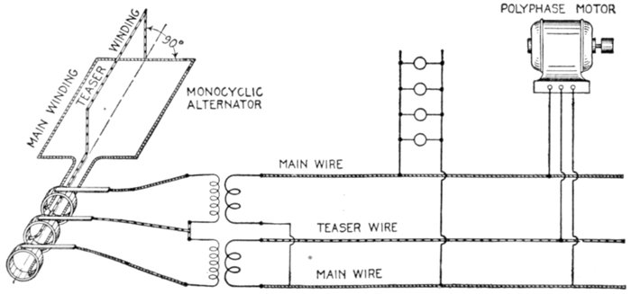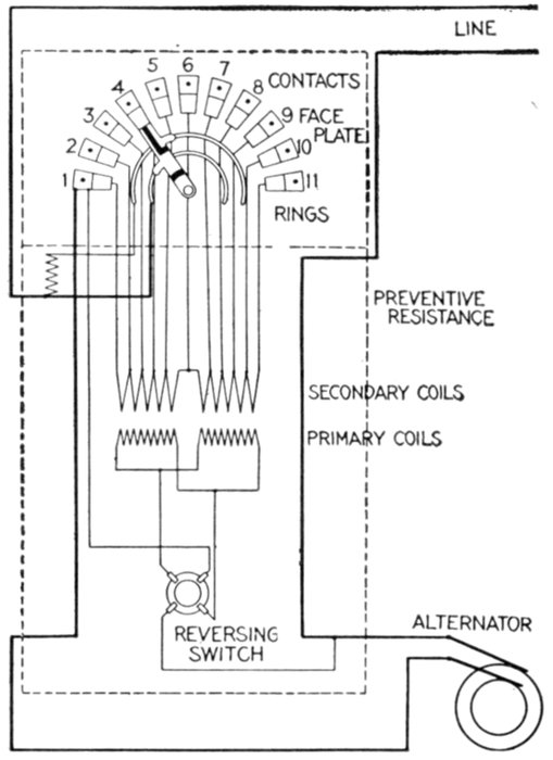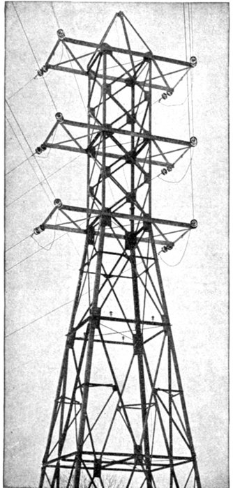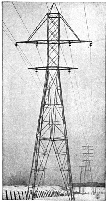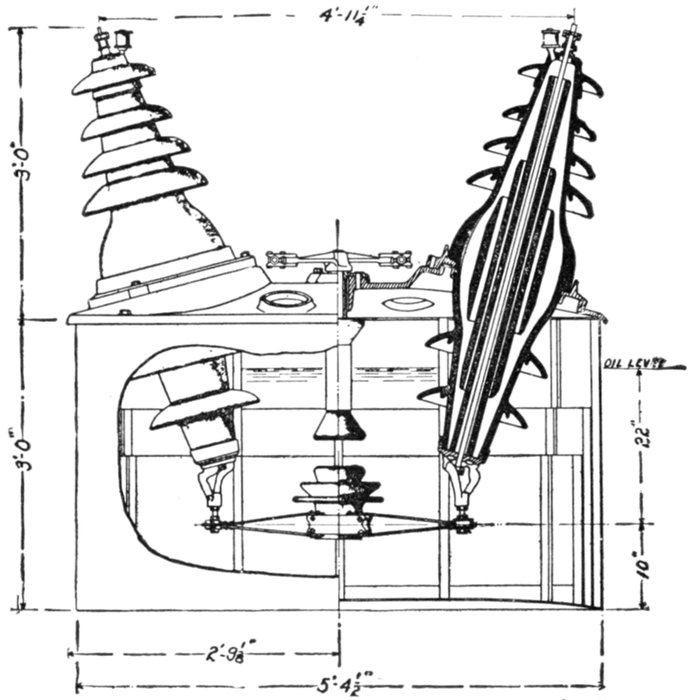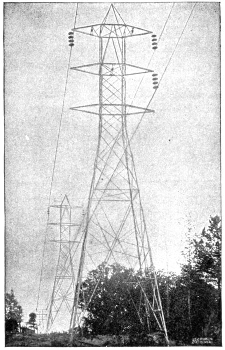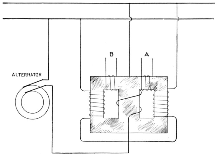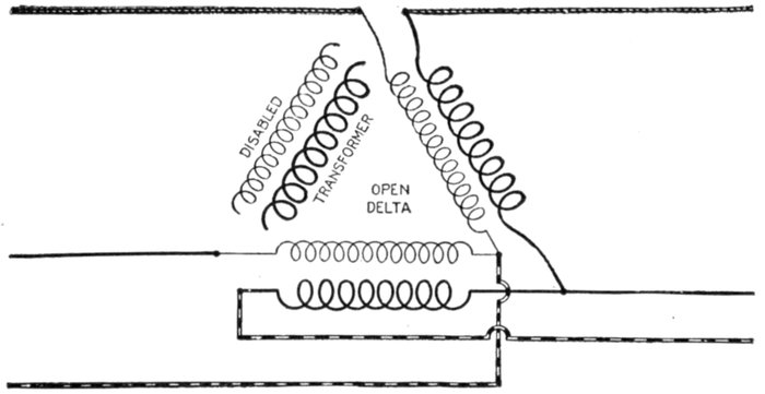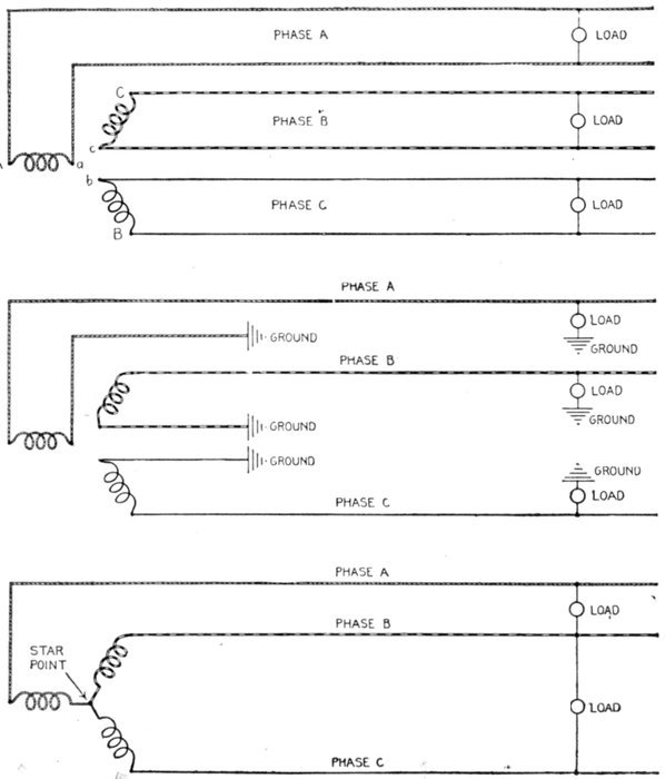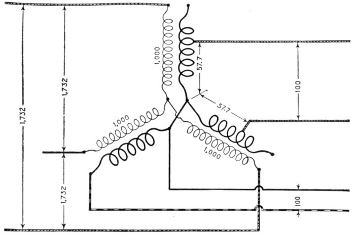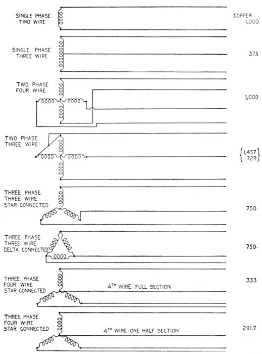 Furthermore, when the fact that two phase current can be readily transformed into three phase current, and these converted into direct current, and vice versa, by means of rotary converters and rectifiers, is added to the advantages derived by the use of high tension systems, it is apparent that the opportunity for elaboration becomes almost unlimited. These conditions have naturally tended toward the development of a great variety of systems, employing more or less complicated circuits and apparatus, and although alternating current practice is still much less definite than direct current work, certain polyphase systems are now being generally accepted as representing the highest standards of power generation, transmission and distribution.