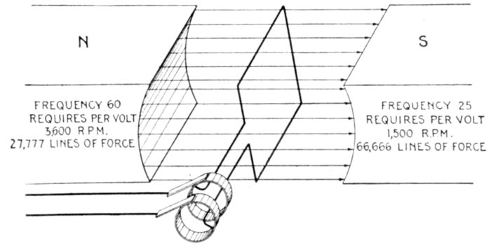 frequency = (revolutions per second × number of poles) ÷ 2.