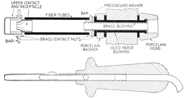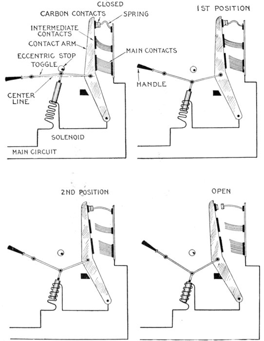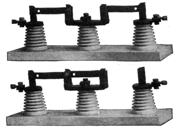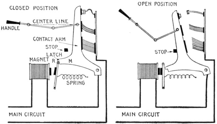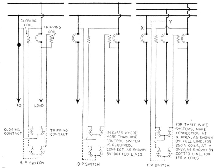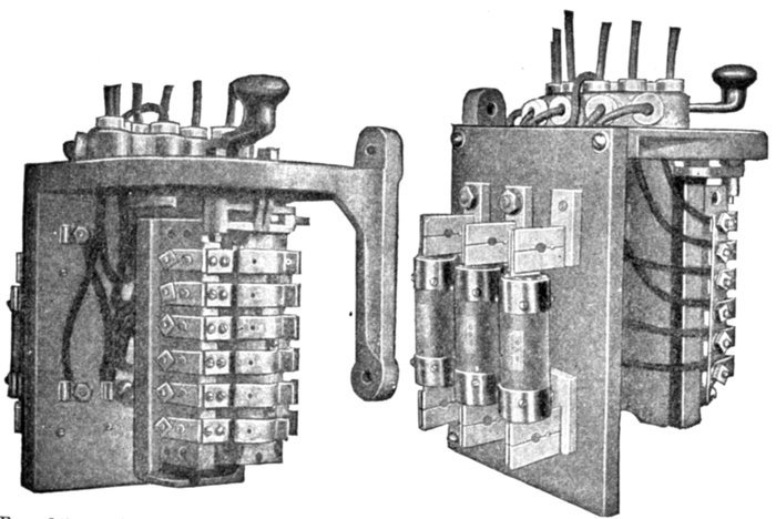 | Definition of a switch—behaviour of the current when the circuit is broken—points on design—installation of single throw and double throw switches—plug switches—forms of break: open, enclosed, fuse, horn, oil—disconnecting switches—pole top switches—horn break switches—motor starting switch—oil switches; nature of an oil break—remote control oil switches—motor operated switches—rupturing capacity of oil switches—float switches. | |