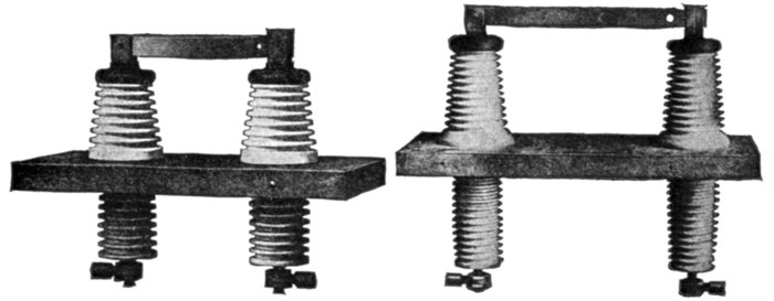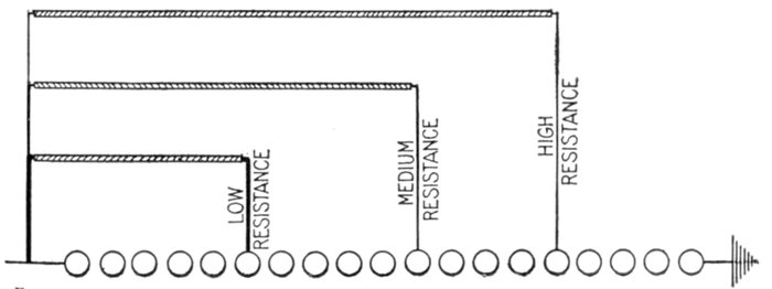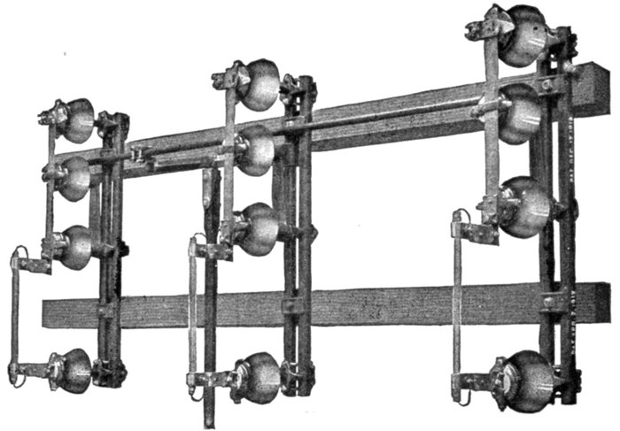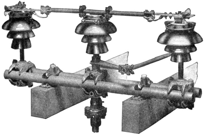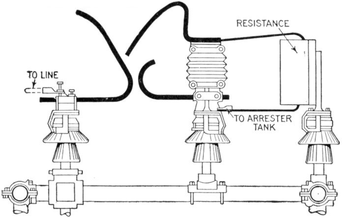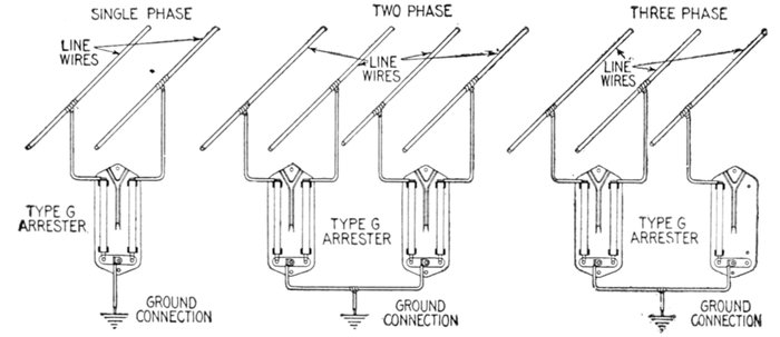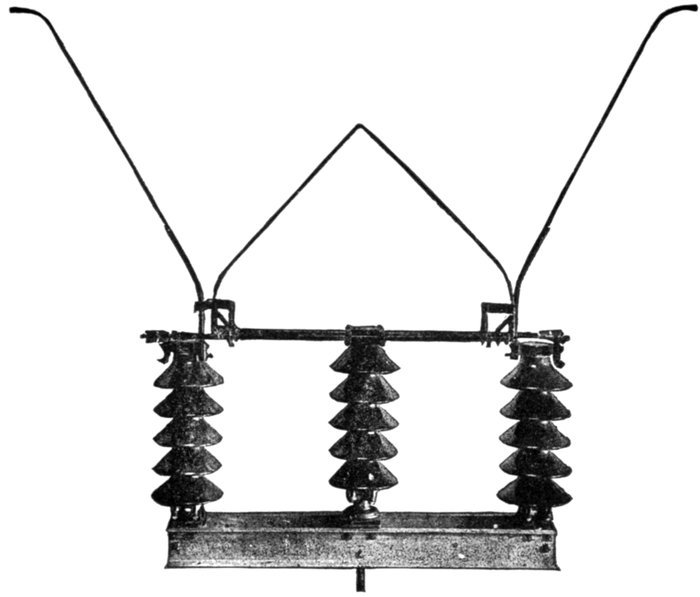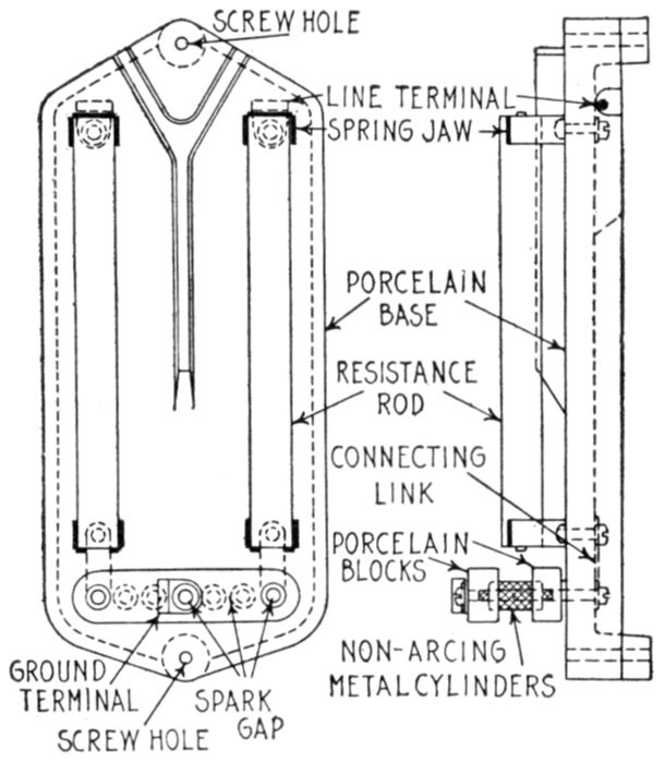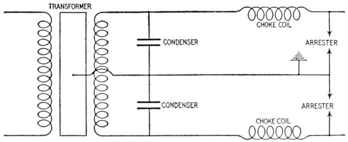 | Essential parts: air gaps, resistances, inductances, arc suppressing devices—requirements—air gap arresters—multi-gap arresters; difference between spark and arc; distribution of stress; sparking at the gaps; how the arc is extinguished; effect of frequency; graded shunt resistances; the cumulative or breaking back effect—arresters for grounded Y and non-grounded neutral systems—multiplex connection—horn gap arresters: operation; objection to the horn gap—electrolytic arresters: critical voltage, temporary and permanent; determination of number of cell; putting cell in commission; nature of the film; horn gaps on electrolytic arresters; charging of electrolytic arresters; charging arresters for non-grounded circuits—grounded and non-grounded neutral circuits—[Pg v]ground connections—choke coils: principal objects; principal electrical conditions to be avoided; why choke coils are made in the form of an hour glass; cooling—static interrupters; how to connect condenser and choke coil; effect of condenser. | |