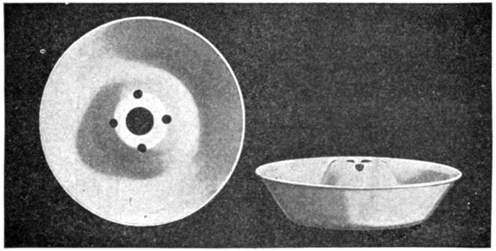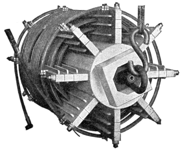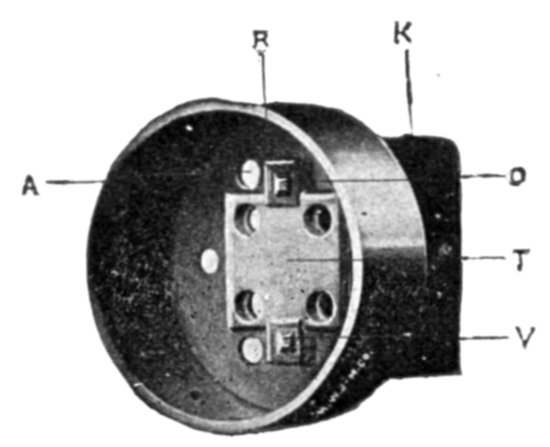 The Faraday Disc, or Mercury Motor Ampere Hour Meter.—On this type of meter the mercury motor consists essentially of a copper disc floated in mercury between the poles of a magnet and provided with leads to and from the mercury at diametrically opposite points. The theoretical relations of the various parts are shown in fig. 2,558.