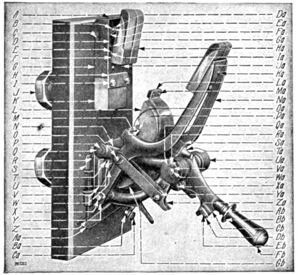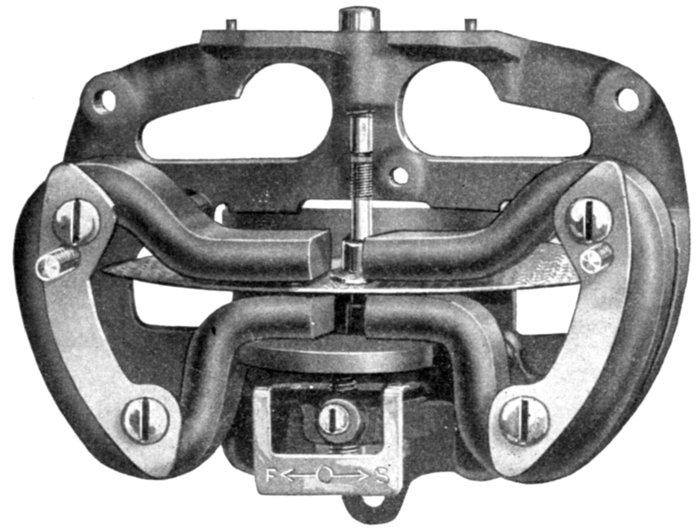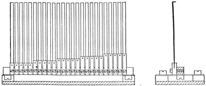 The reeds are made of spring steel, 3 or 7 mm. wide, with a small portion of their free ends bent over at right angles as shown in fig. 2,566 and enameled white so that when viewed end on they will be easily visible. The reeds are of adjustable length, and are weighted at the end.