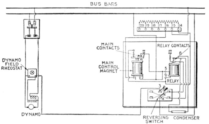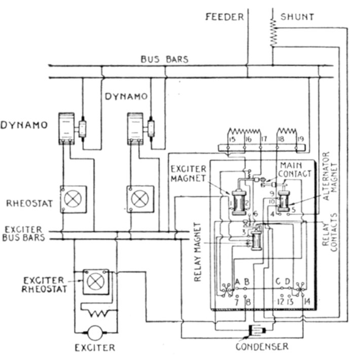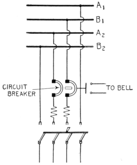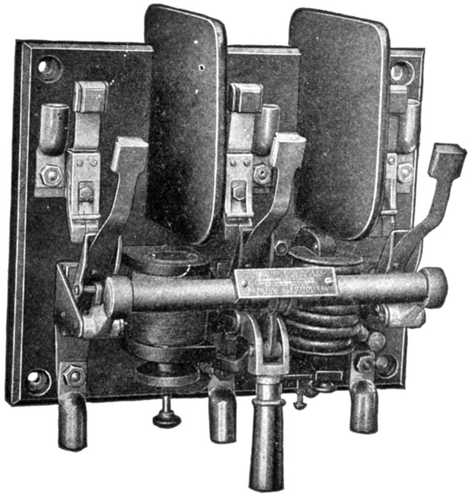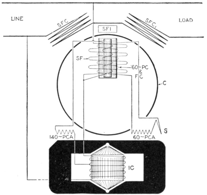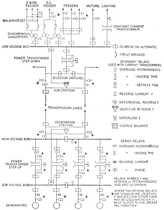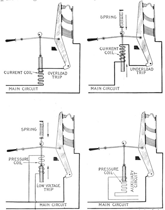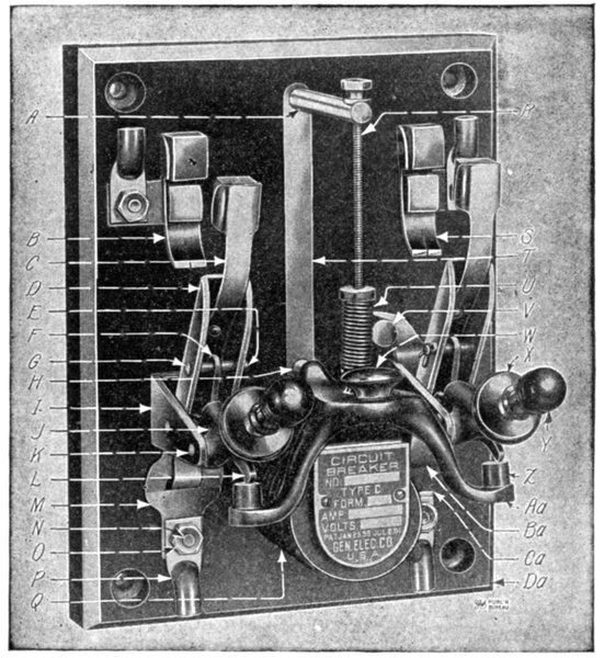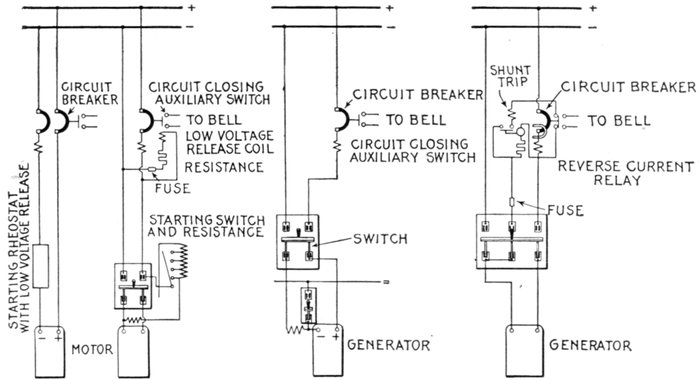 | Necessity for these devices; steam analogy—fuses: advantages and disadvantages; types: plug, cut out, expulsion, no arc, magnetic blow out, quick break fuse, etc.—metal used—current limiting inductances: construction, location—circuit breakers: progressive breaking of the circuit; carbon contacts—automatic features: overload trip, underload trip, low voltage trip, auxiliary circuit trip—relays: adaptation; classification: protective, regulative, communicative, a.c. and d.c., circuit opening, circuit closing, primary, secondary, overload, underload, over voltage, low voltage, reverse energy, reverse phase, instantaneous, time limit, inverse time limit, differential—how to select relays. | |