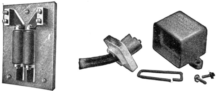 Fig. 2,572.—General Electric external resistance and inductance for 110 volt synchronism indicator. Both the resistance and inductance are intended to be placed behind the switchboard.