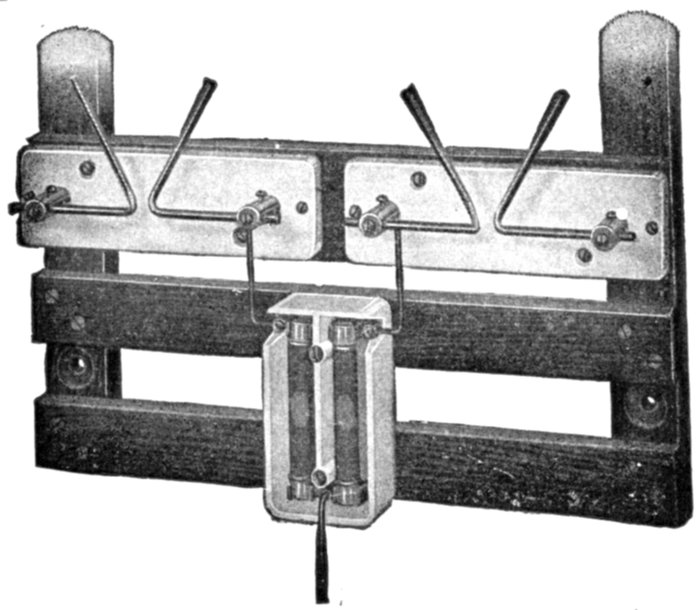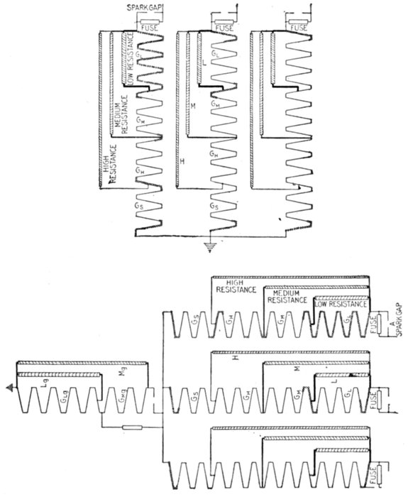Ground Detectors.—Instruments of this name are used for detecting (and sometimes measuring) the leakage to earth or[Pg 1837] the insulation of a line or network and are sometimes called ground or earth indicators, or leakage detectors.