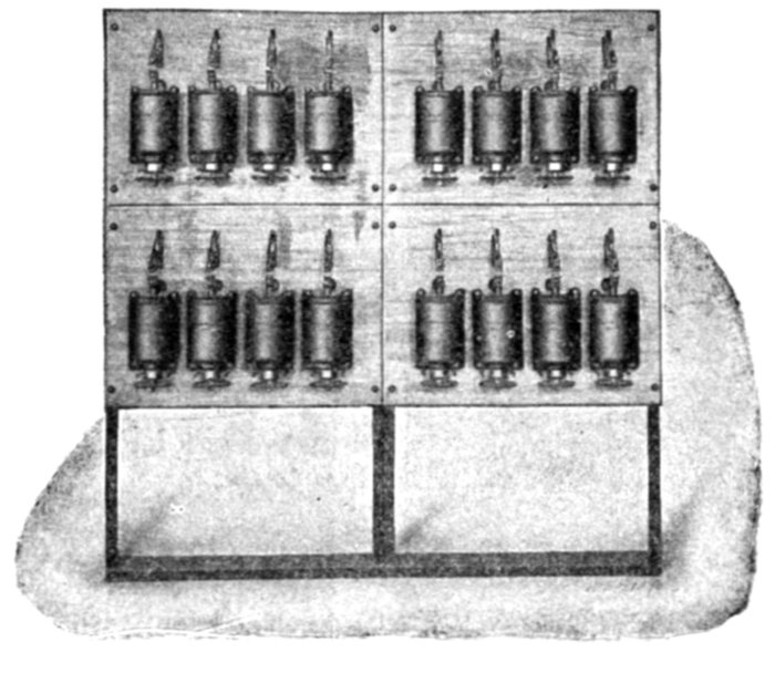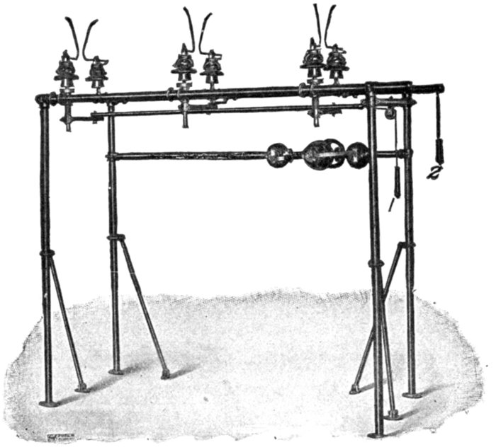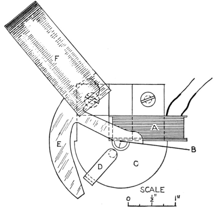 The reed which is in tune will vibrate through an arc of considerable amplitude, and so indicate the frequency of the exciting current.