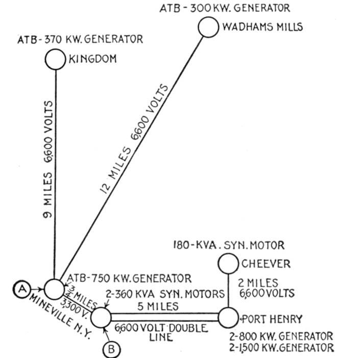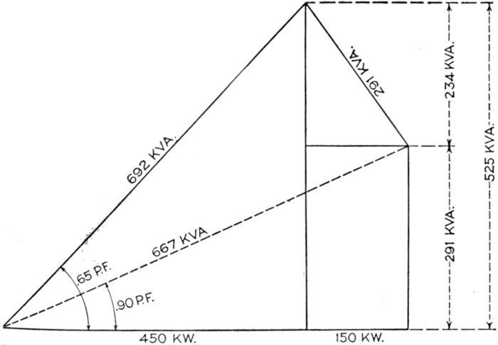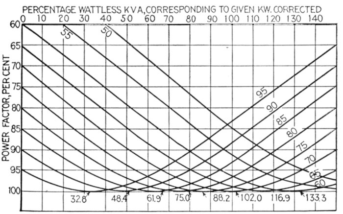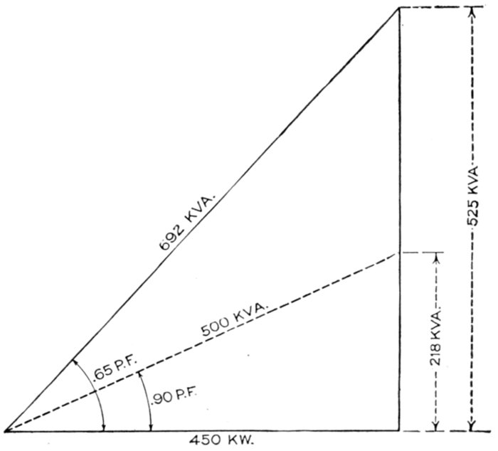 | Characteristics—effect of fully loaded and lightly loaded induction motors on the power factor—synchronous motor used as condenser—effects of low lagging power factors; example—cost of synchronous condenser vs. cost of copper—location of condenser—synchronous condenser calculations and diagram for same. | |