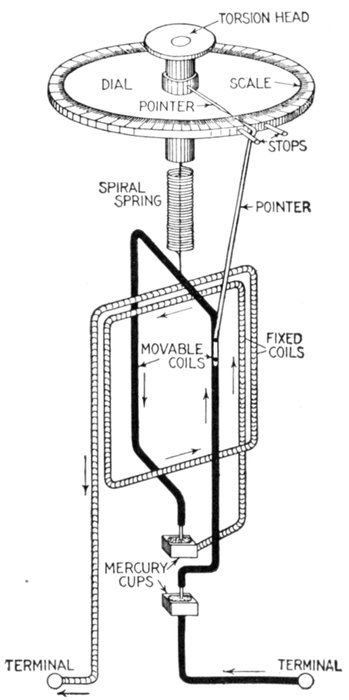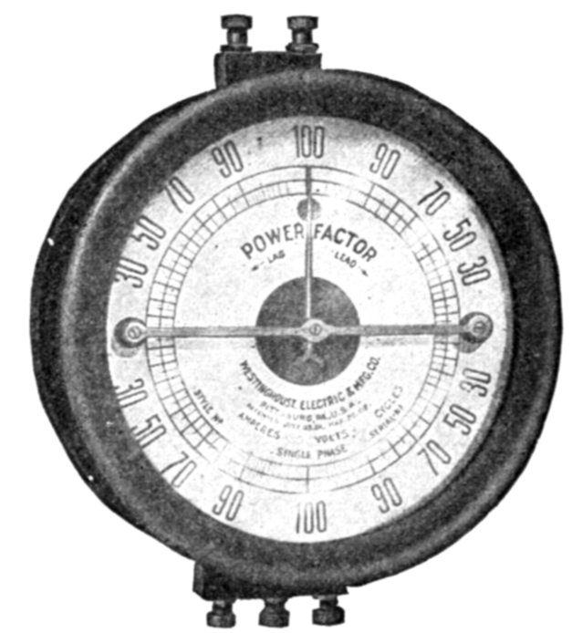 For instance, in a dynamometer wattmeter, the pressure circuit is made highly inductive and the instrument then indicates volts × amperes × sin φ instead of volts × amperes × cos φ, that is to say, it will indicate the wattless component of the power. A dynamometer of this type is sometimes called an idle current wattmeter.