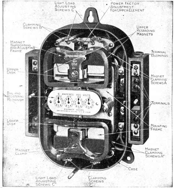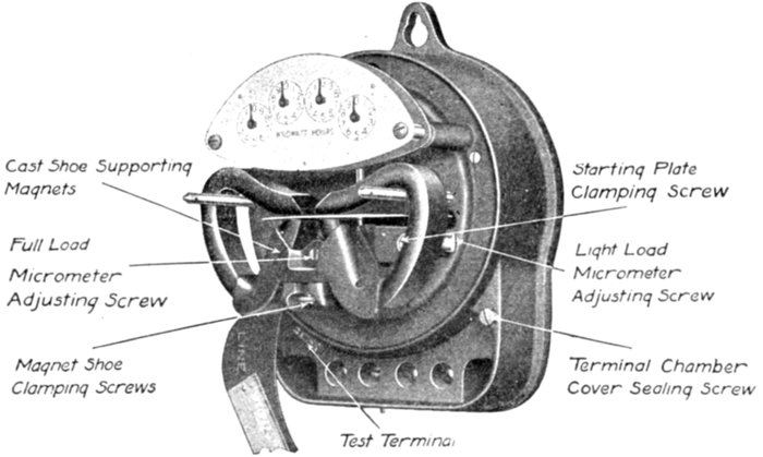 Terminal chambers so arranged that the cover of the meter element need not be removed in connecting up, are an important[Pg 1822] feature, particularly in meters that require no adjustment at installation, as they prevent entrance of dust into the main meter chamber.