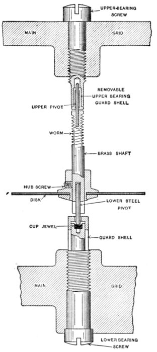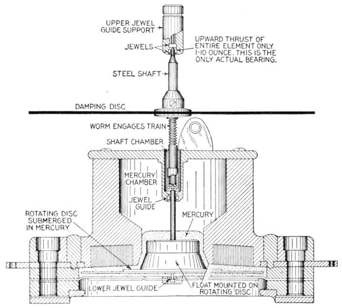 Fig. 2,560.—Sectional view of Faraday disc or mercury motor ampere hour meter as made by Sangamo Electric Co. The illustration does not show the magnets and indicating mechanism.