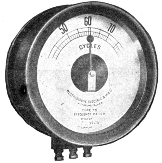 Frequency Indicators.—A frequency indicator or meter is an instrument used for determining the frequency, or number of cycles per second of an alternating current. There are several forms of frequency indicator, whose principle of operation differs, and according to which, they may be classed as