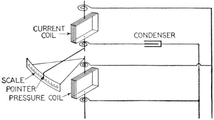 Power Factor Indicators.—Meters of this class indicate the phase relationship between pressure and current, and are therefore sometimes called phase indicators. There are two types: