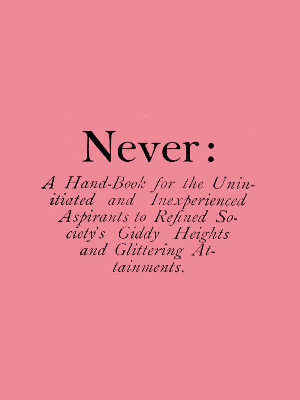 This little book is cordially recommended to all parties just hesitating on the plush-padded, gilt-edged threshold of our highest social circles.