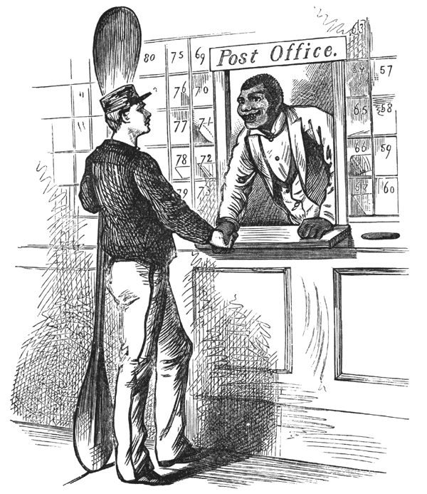 It was amusing to watch the varied expression of the negroes, as they listened to this description of the discovery of electricity, and the origin of the telegraph. Their eyes dilated with wonder, and their thick lips parted till the mouth, growing wider and wider, seemed to cover more than its share of the face. The momentary silence was soon broken by a deep gurgle proceeding from a stolid-looking negro, as he exclaimed: "Did he kotch de bottle full ob litening, and cork him up. Golly! I tort he wud hab busted hissef!"[330]