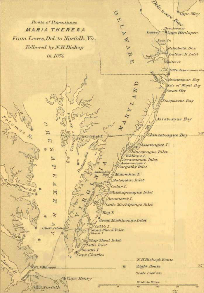 The Portage to Love Creek.—The Delaware Whipping-post.—Rehoboth and Indian River Bays.—A Portage to Little Assawaman Bay.—Isle of Wight Bay.—Winchester Plantation.—Chincoteague.—Watchapreague Inlet.—Cobb's Island.—Cherrystone.—Arrival at Norfolk.—The "Landmark's" Enterprise.114