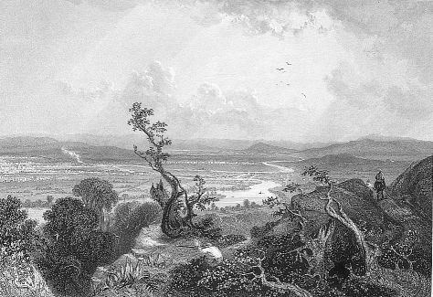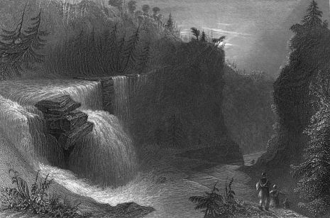 There is a field for the artist in this country (of which this publication reaps almost the first-fruits) which surpasses every other in richness of picturesque. The great difficulty at present is, where to choose. Every mile upon the rivers, every hollow in the landscape, every turn in the innumerable mountain streams, arrests the painter’s eye, and offers him some untouched and peculiar variety of an exhaustless nature. It is in river scenery, however, that America excels all other lands: and here the artist’s labour is not, as in Europe, to embellish and idealise the reality; he finds it difficult to come up to it. How represent the excessive richness of the foliage! How draw the vanishing lines which mark the swells in the forest-ground, the round heaps of the chestnut-tops, the greener belts through the wilderness which betray the wanderings of the water-courses! How give in so small a space the evasive swiftness of the rapid, the terrific plunge of the precipice, or the airy wheel of the eagle, as his diminished form shoots off from the sharp line of the summit, and cuts a circle on the sky!