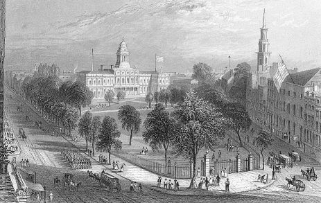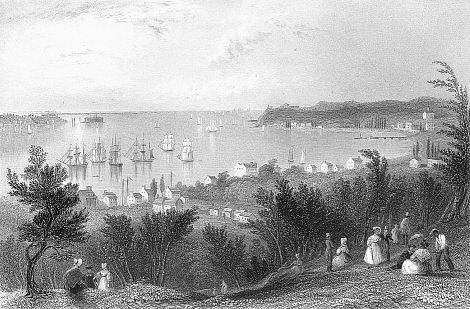 From this admirably chosen spot, the Bay of New York appears with every accessory of beauty. The city itself comes into the left of the picture to an advantage seen from no other point of view, the flocks of river-craft scud past in all directions, men-of-war, merchantmen, steamers, and ferry-boats, fill up the moving elements of the panorama; and far away beyond stretches the broad harbour, with its glassy or disturbed waters, in all the varieties of ever-changing sea-view. It was on this side that Hudson, who had felt the hostility of the Manhattan Indians, found a friendlier tribe, and made his first amicable visit on shore. The Indian tradition, springing from that visit,[2] and describing the first intoxication they had ever experienced, is extremely amusing.