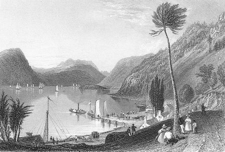 Sabbath-day Point presents one of the most beautiful of the many views upon the lake. It received its name from Lord Amherst, who landed there with his suite to breakfast on a Sunday morning. It is about twenty-five miles from the head of the lake.